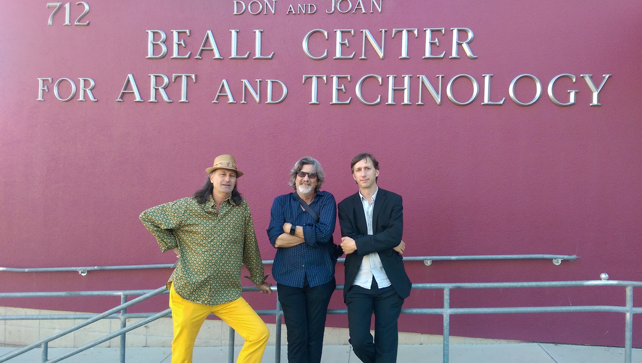 Previous image Next image imag3950_29425754144_o Alex May with exhibition curators Simon Penny (left) and David Familian (center)